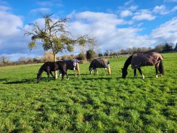 Pour 4 chevaux en pension pré à l'année. Présence d'un abri stabilisé, eau avec abreuvoir à niveau, râtelier à foin sur zone stabilisée. Foin de qualité produit sur la structure. Surveillance quotidienne avec présence sur place.