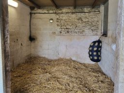 Stabulation pour 2 chevaux, spacieuse ( 40m2), sur paille, possibilité de mettre sur copeaux sur demande. Sortie des chevaux tous les jours (dimanche et jours fériés inclus). Foin de qualité produit sur la structure. Surveillance quotidienne avec présence sur place.